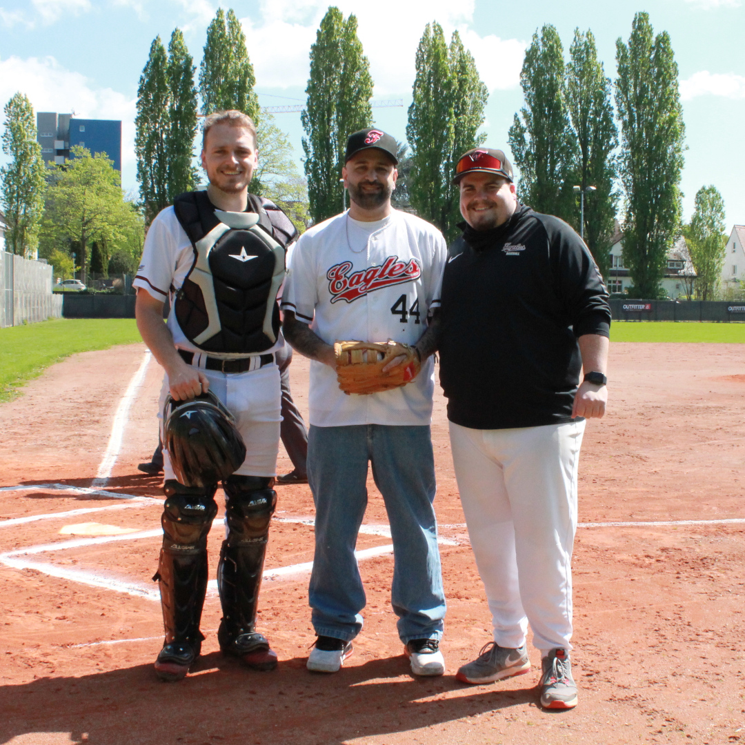 Den offiziellen First Pitch warf unser langjähriges Mitglied Nizar Ghandour. Nizar ist nicht nur ein reguläres Vereinsmitglied, sondern auch der langjährigste Förderer, Unterstützer und Sponsor unserer Abteilung. Bedruckte Trinkflaschen, T-Shirts und Trikots bis hin zur Unterbringung von Importspielern in seinem Hotel sind nur einige Beispiele für sein außergewöhnliches Engagement!